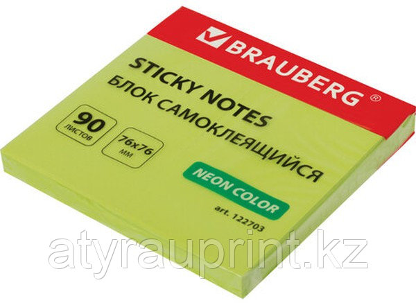 Блок самоклеящийся (стикеры), BRAUBERG, НЕОНОВЫЙ, 76х76 мм, 90 листов, зеленый