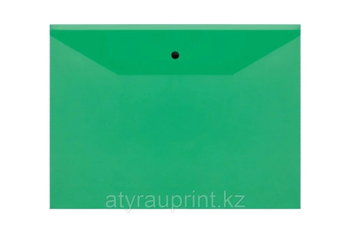 Папка-конверт на кнопке СТАММ А4, 120мкм, пластик, прозрачная, зеленая
